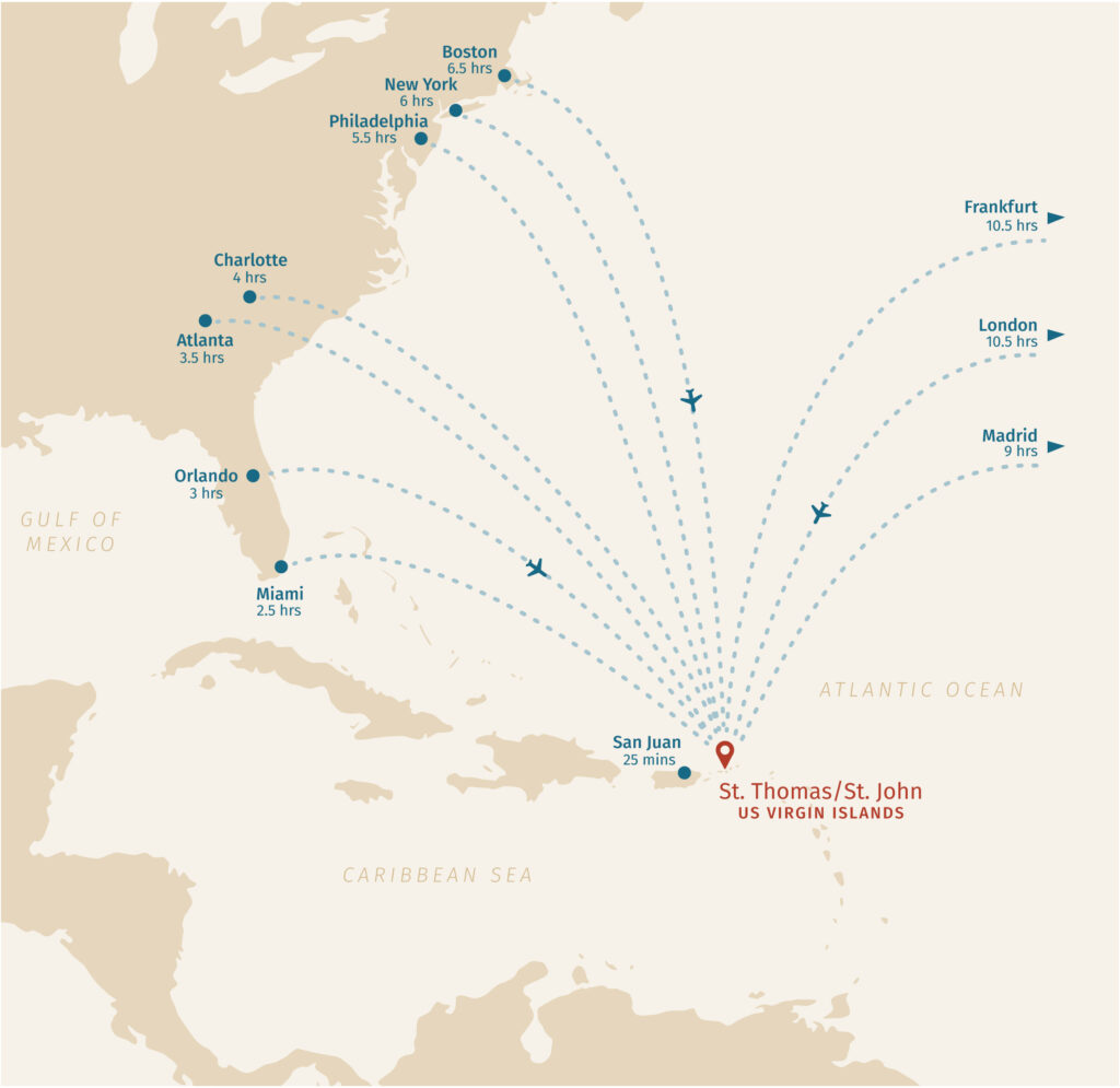 Additionally, several flights depart every day from San Juan, Puerto Rico to St. Thomas. Since most flights are offered every day throughout the year, the Virgin Islands are very well connected, making them an attractive location that’s easily reached, even on short notice. Learn more about flights to the US Virgin Islands.