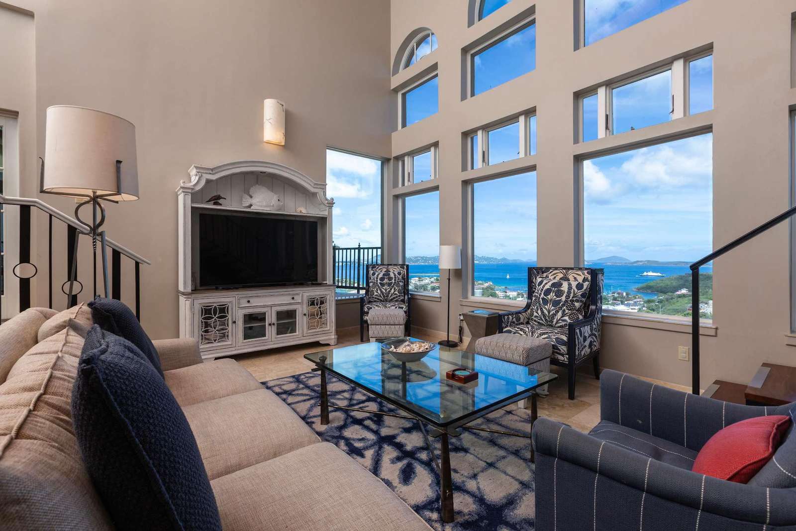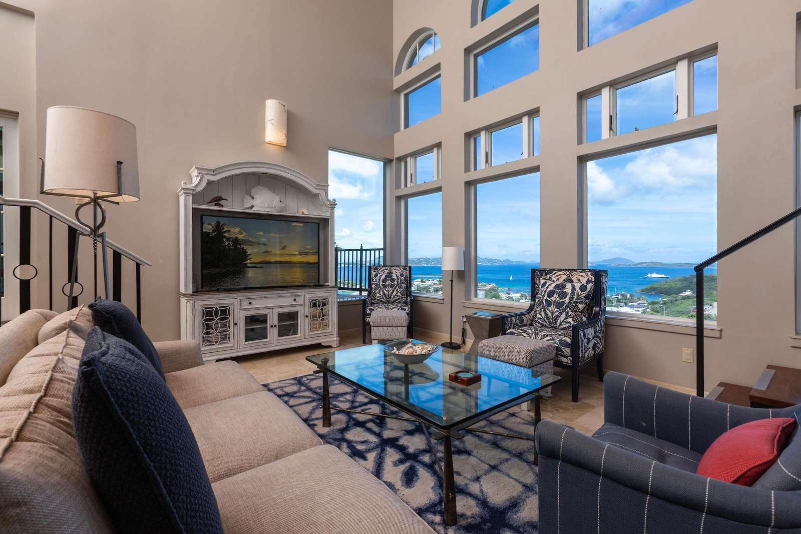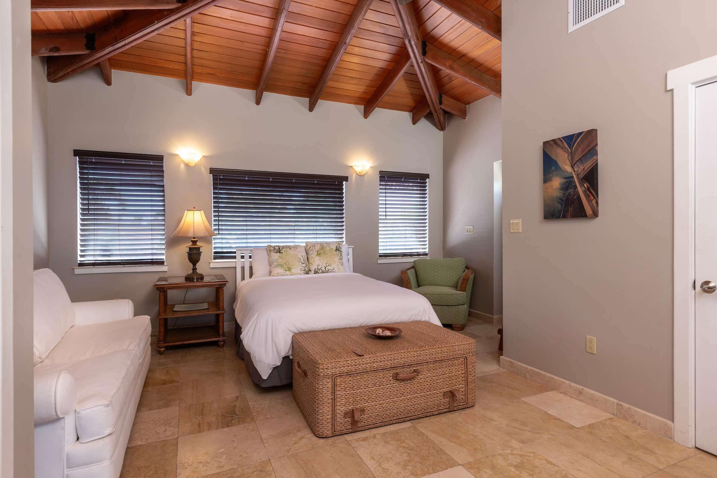 The warm and inviting aesthetics of the villa are complemented by local St. Thomas and St. John artwork, including striking metal prints by John and Dean Baldwin. Additional amenities include a dedicated laundry room with oversized washer and dryer; beach chairs and coolers for your convenience and plenty of space for storing luggage and additional beach toys.